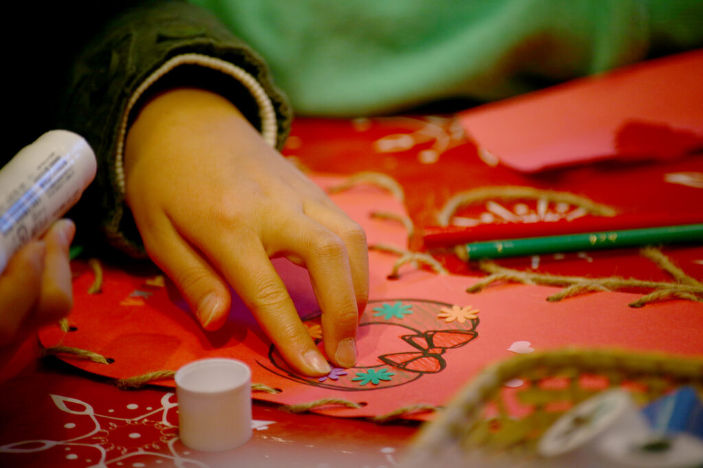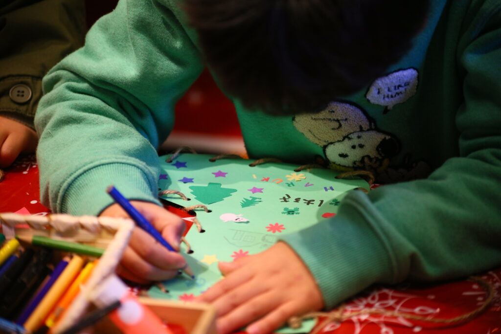 星や雪の結晶など、色々な形の画用紙をペタペタ貼って自分だけの『クリスマスくつした』を作ろう!