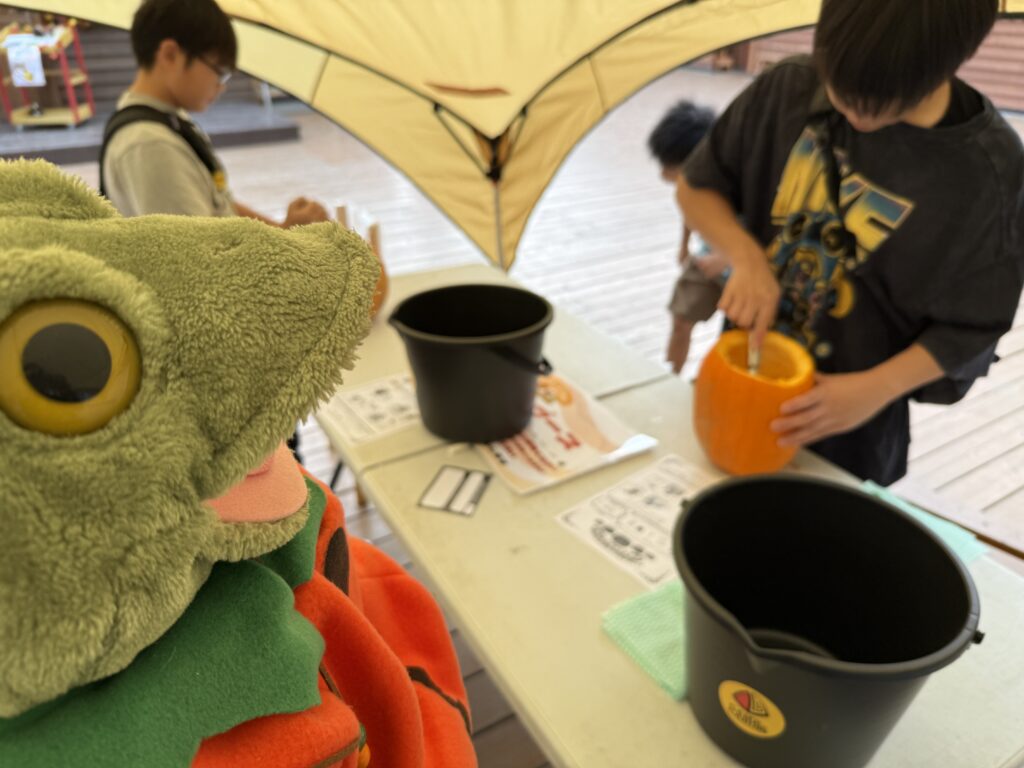 キャンプ場を仮装してお菓子をもらいに行くトリックオアトリートやかぼちゃランタンづくりなど開催しています♪