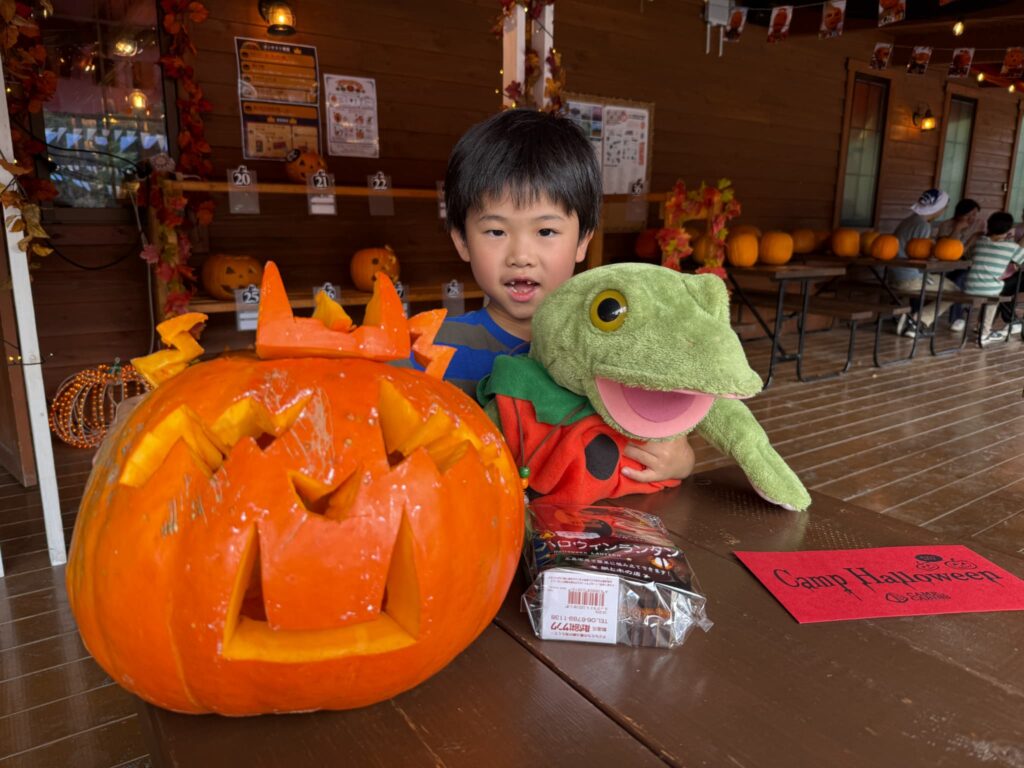 キャンプ場ではハロウィン限定で”かぼちゃランタンづくり”を開催しています♪