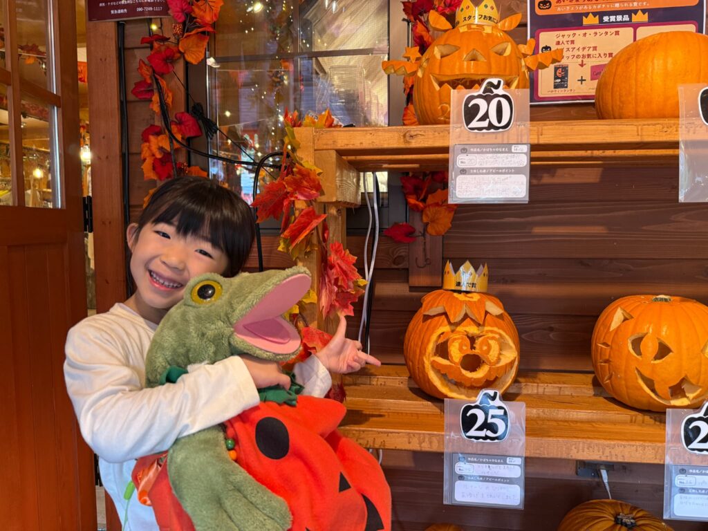 このカボチャをくり抜いてオリジナルのジャック・オ・ランタンを作り上げてもらいます。週末はコンテストも開催しています!