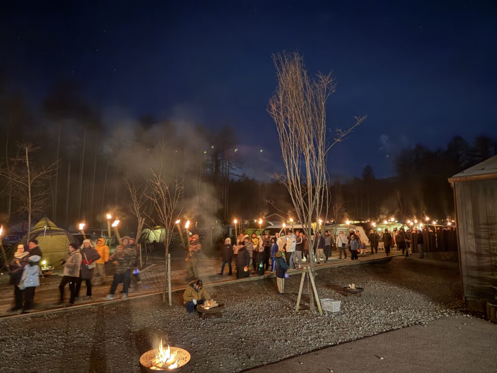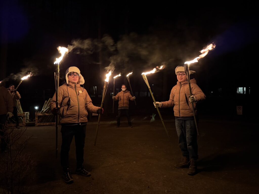 年越しまで1時間。みんなでたいまつ&ランタン行進を行いました!とても幻想的な景色が見れました♪